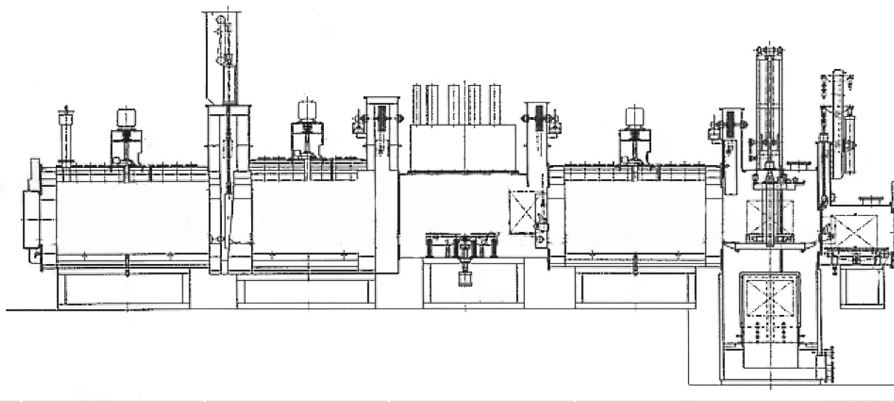 第一台额定功率为 407.1 kW 的高温连续式渗碳炉共配备了 69 台直径为 Ø 68 mm (2.7 in) 的 Tubothal® 加热器,这些加热器内装有外径为 Ø 83 mm (3.3 in) 的 Kanthal® APM 辐射防护管。 每个加热元件的功率在 5.5 和 7.8 kW 范围之间。 炉内气氛是吸热的,渗碳区的碳势为 15%。