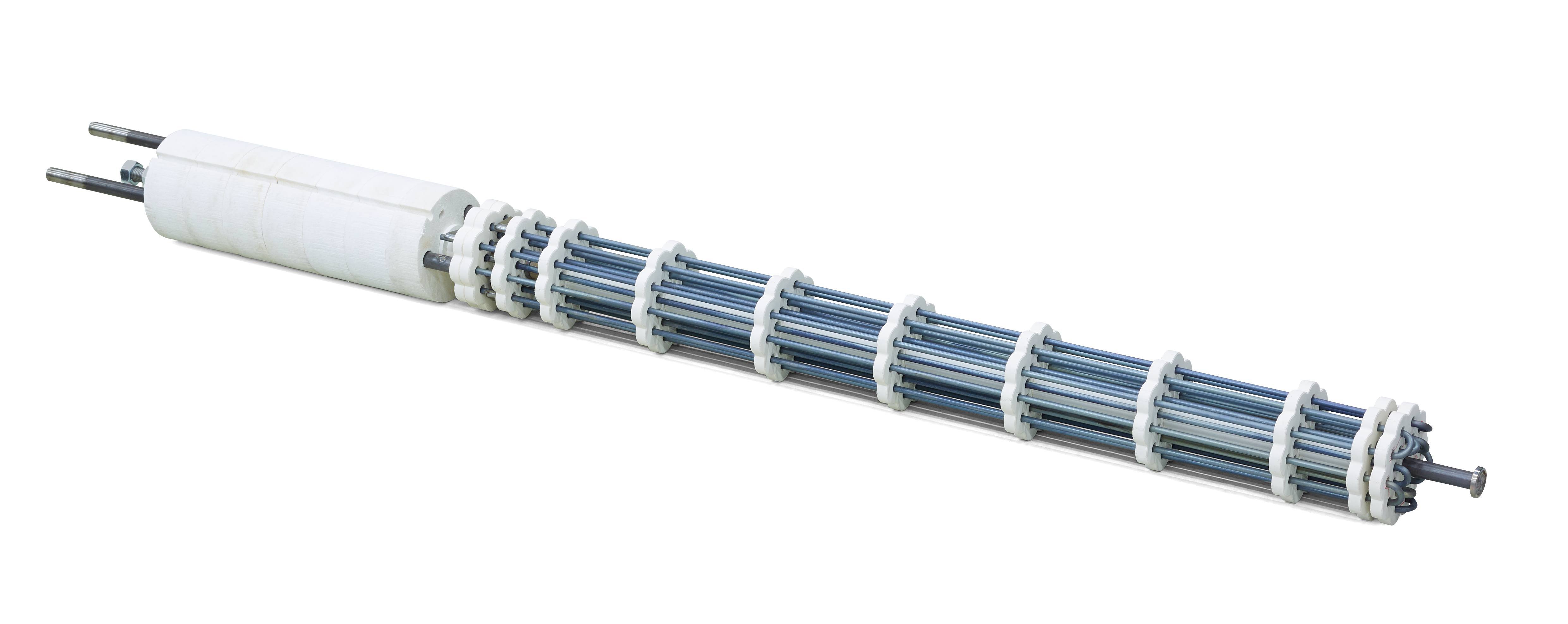 每个加热元件的额定功率为 8.33 kW @ 120 V,相当于在元件制造中所用 Kanthal® APM 线材上的表面负荷要达到 2.4 W/cm2 (15.5 W/in2),而该管材负荷则高达 2.07 W/cm2 (13.4 W/in2)。 元件系统设计可直接连接到电源电压,从而无需使用笨重的变压器。